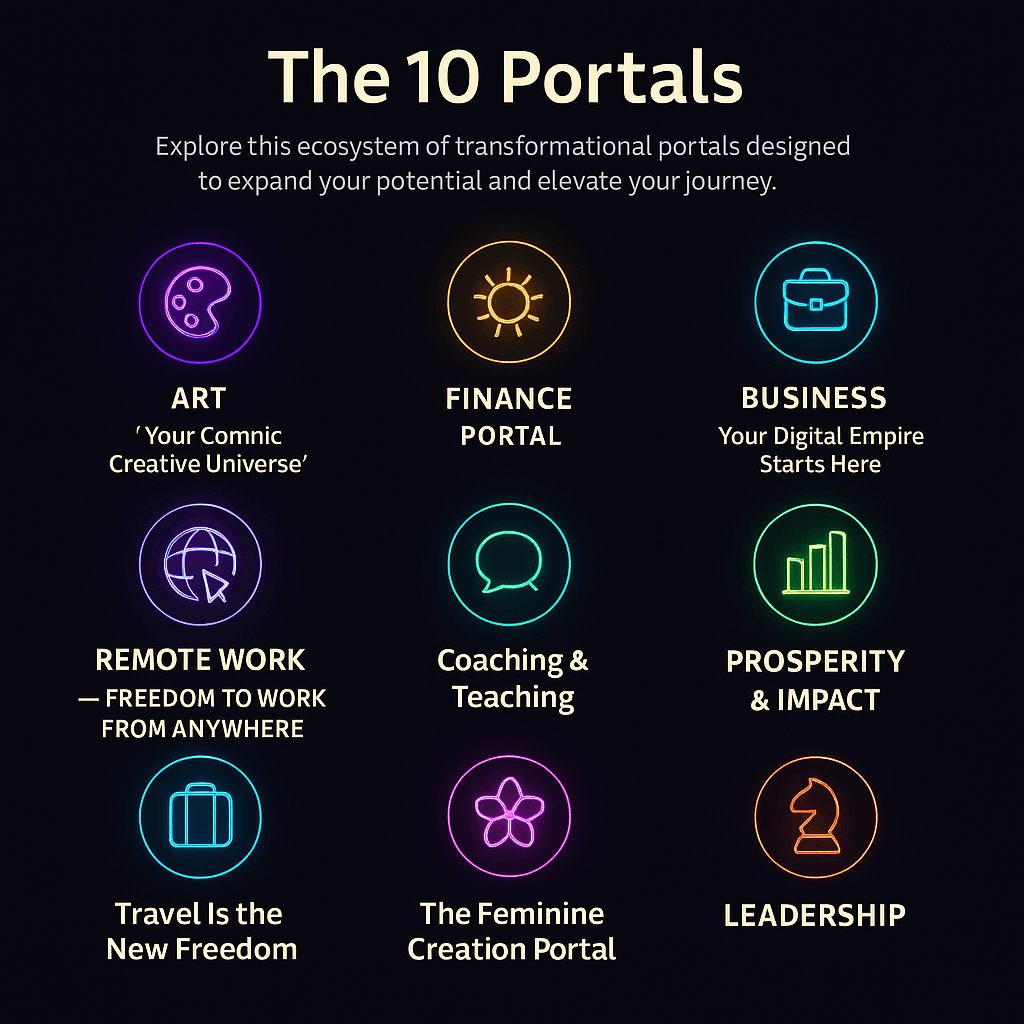 Explore this ecosystem of transformational portals designed to expand your potential and elevate your journey.