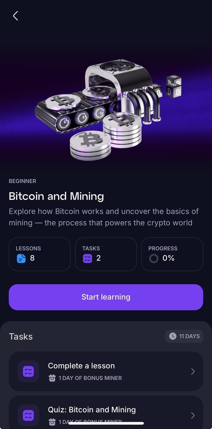 If you have less technical experience, it`s no problem. There will be no worries as GoMining is helping and holding your hand 24/7. If you want to learn more about the technology, the protocols, and start for free, GoMining has free courses and tasks that pay you for daily mining. Everything is organized for you to succeed and earn great profits.