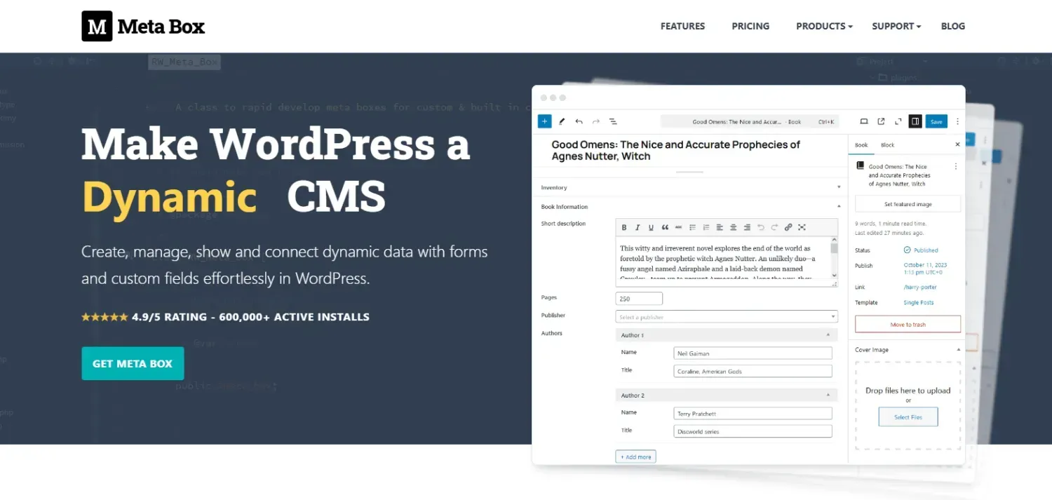 Meta Box is the most powerful & comprehensive WordPress custom fields plugin. It's an AIO solution for WordPress developers to build custom fields. Fast, simple, and it works!